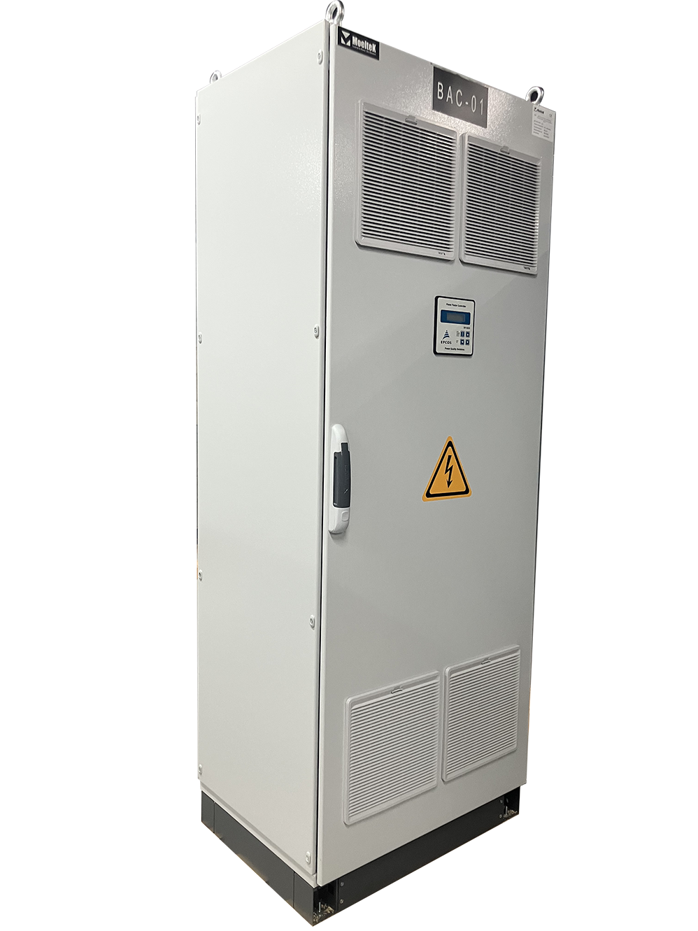 Combina la compensación dinámica de factor de potencia, potencia reactiva, estabilización del voltaje, filtrado activo de armónicos y reducción de flicker.